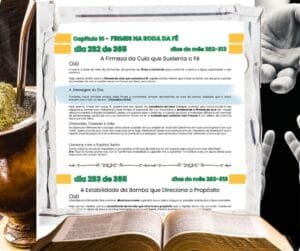 Chega de leituras aleatórias. O “Chimarrão com o Espírito Santo” é um programa de desenvolvimento espiritual estruturado em 12 Capítulos Intencionais, garantindo que sua jornada para a fé inabalável seja completa e progressiva.