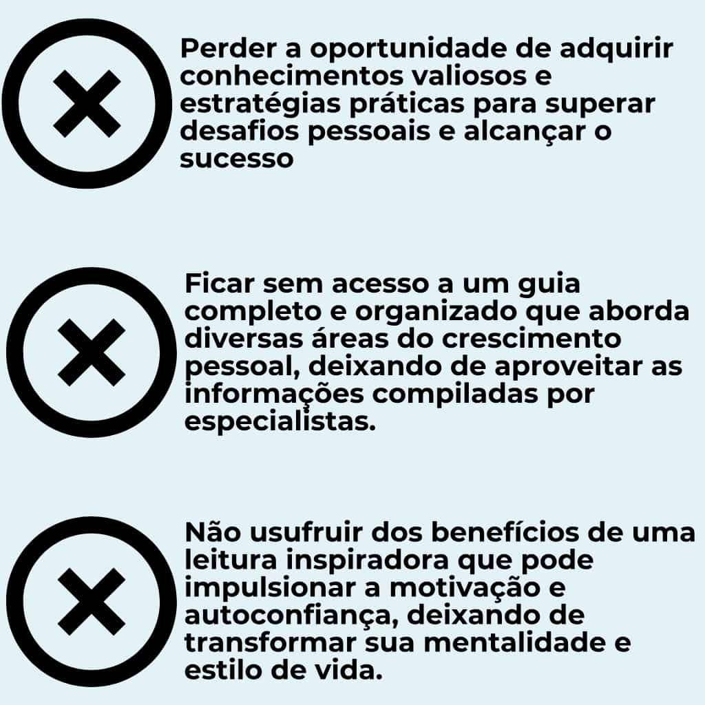 Os bônus oferecem estratégias avançadas que vão além do conteúdo principal do e-book, permitindo que você aprofunde seu desenvolvimento pessoal. Você aprenderá a cultivar hábitos duradouros, fortalecer sua mentalidade para o sucesso, gerenciar o tempo de forma mais eficaz e superar obstáculos que podem estar impedindo seu crescimento.