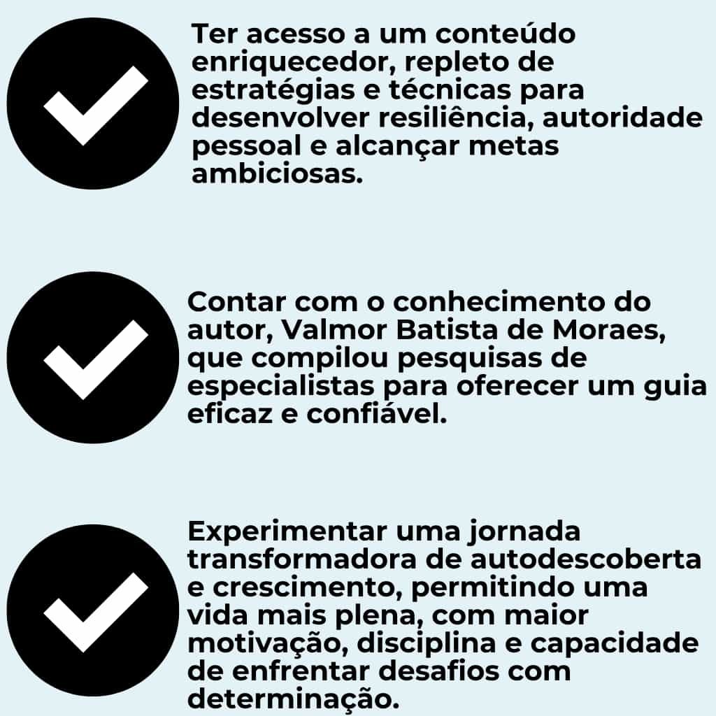 O e-book é um guia prático e motivacional que ensina como superar obstáculos pessoais e profissionais, alcançar o sucesso e desenvolver autoridade sobre sua própria vida.